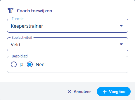 Door "Voeg toe" sla je de betreffende coachfunctie op en kun je deze gebruiken om aan je leden toe te wijzen