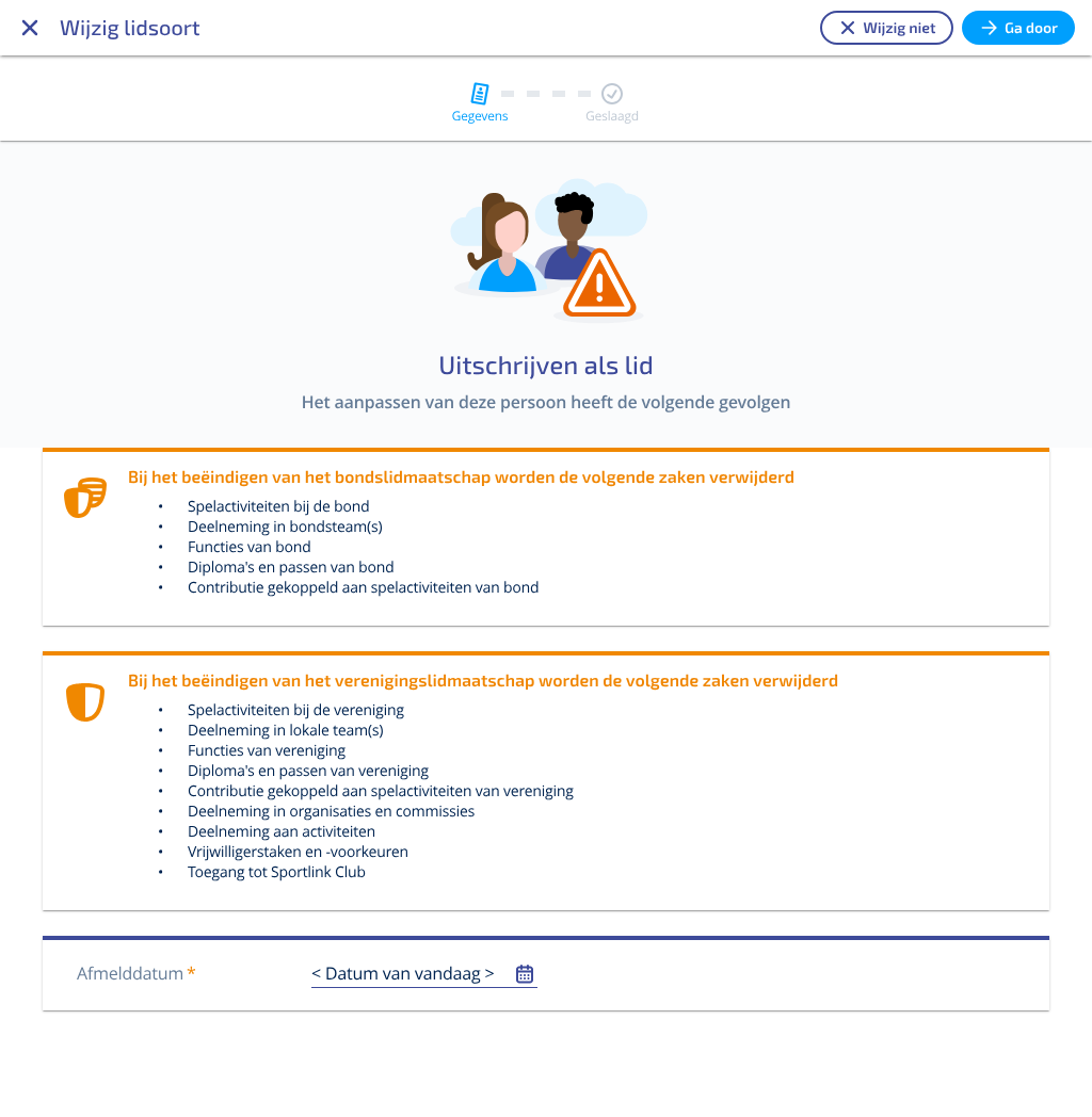 Lidmaatschap omzetten naar verenigingslid (downgrade)