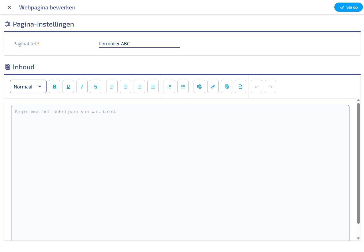 - Plak de code in je website op de gewenste pagina in het Content (editor) blok. Zie Sportlink Web screenshot :