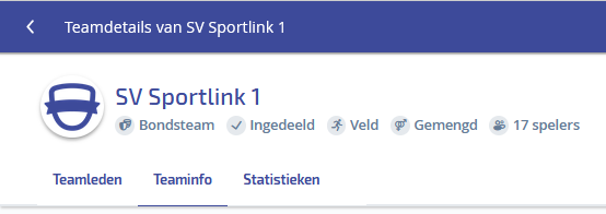 Na het openen van een bondsteam, kan je verschillende tabbladen openen. Open de tab "Teaminfo".