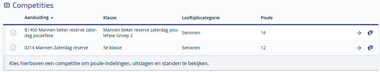 Door op een regel te klikken of te tikken bij het onderdeel "Competities" open je de gegevens voor de competitie(s) waaraan het betreffende team deelneemt.